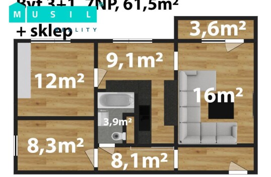 Pronájem bytu 3+1 na ulici Fisherova v Olomouci. Byt se nachází v 1.NP a má výměru 63m2. Disponuje 3 neprůchozími pokoji, kuchyňskou linkou vybavenou spotřebiči (trouba, mikrovlnka, pračka, lednice). Součástí bytu je balkón a sklep. Budova prošla celkovou rekonstrukcí (nová stře ...