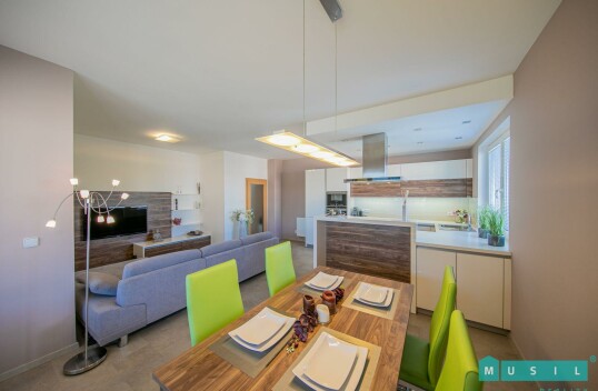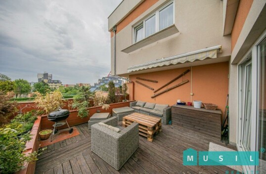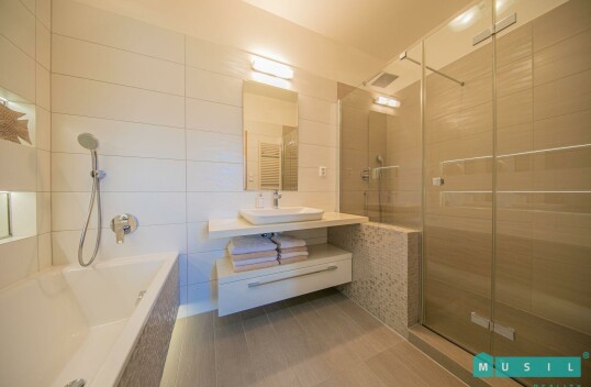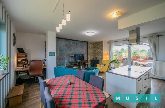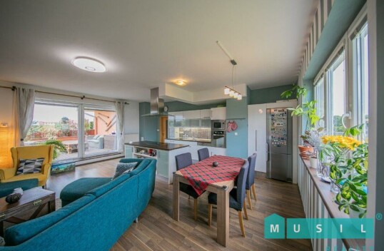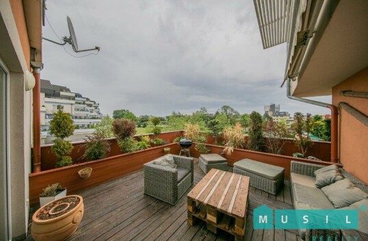 Prodej zánovního, luxusního bytu 3+kk s terasou a garážovým stáním v Olomouci. Byt má výměru 95 m2, prostornou terasu o výměře 25 m2 s jiho-východní orientací, sklep a garážové stání v domě. K bytu dá