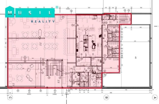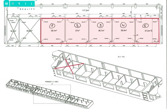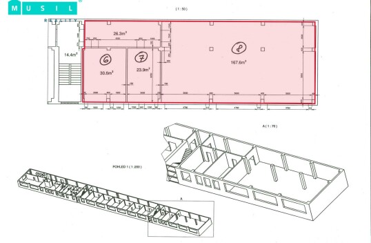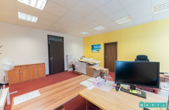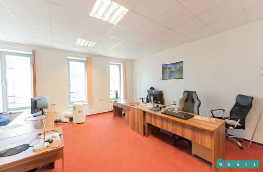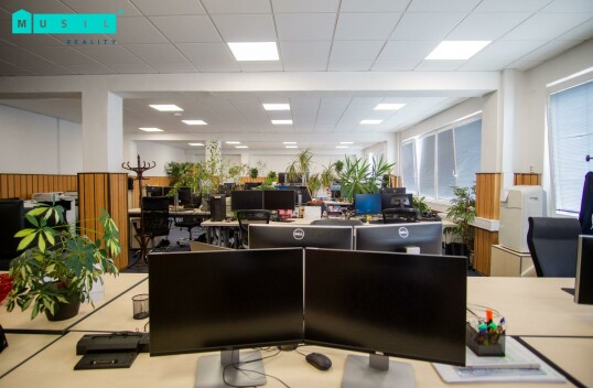 Pronájem kanceláří v prvním patře administrativní budovy na ul. Tovární v Olomouci. Celá plocha nabízí vlastní vstupní chodbu (26,3 m2), dvě menší samostatné kanceláře o výměrách 23,9 m2 a 30,6 m2, a dále velkou otevřenou open space kancelář s rozlohou 167,6 m2 (viz. půdorys). V ...