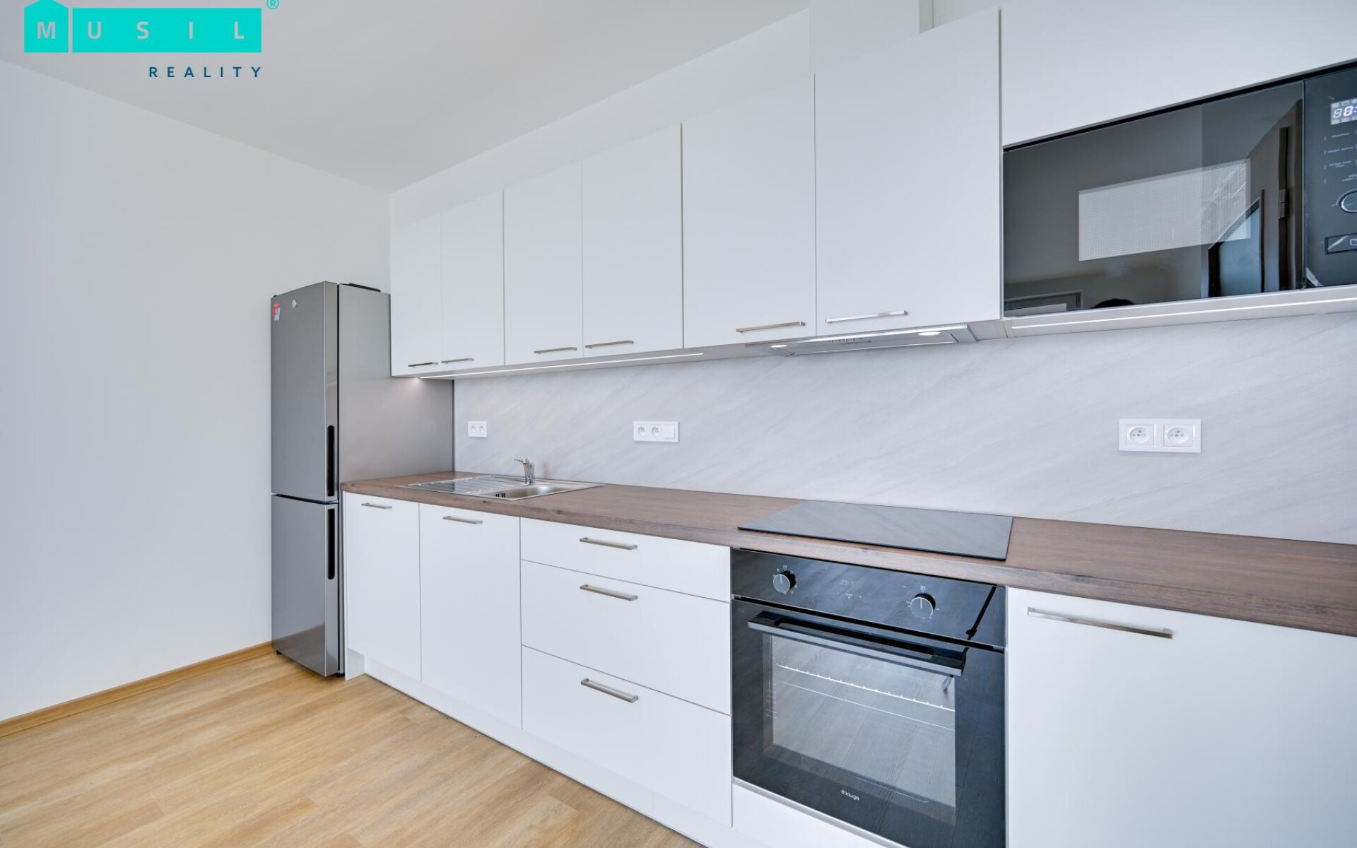 Pronájem právě dokončené novostavby bytu s terasou a komorou nacházející se v novostavbě domu na ulici Topolová v Olomouci. Byt má dispozici 2+kk, jeho výměra činí 65,5 m2, z toho terasa 12 m2, je umístěn ve 2. patře bytového domu s výtahem. Jedná se o zcela novou nemovitost, která čeká na svého nového nájemníka. Luxusní a praktická kuchyňská linka je vybavena vestavěnými spotřebiči varná deska, trouba, mikrovlnná trouba, digestoř, myčka nádobí, lednice s mrazákem. V koupelně je k dispozici prostorná vana, přípojka na pračku, umyvadlo a zrcadlo. Samostatné WC. Na prostorné chodbě se nachází vstup do zbudované komory (šatny), která je obrovskou výhodou a nabídne tak dostatek úložného prostoru. V celém bytě je položená vinylová podlaha a celkový vzhled nemovitosti působí velmi vkusným dojmem. U této novostavby byly vybírány nadstandardní prvky. Terasa nabízí možnost k odpočinku a třeba i pro letní grilování s krásným výhledem na rybník Hamrys. Dále je možno v domě využívat společnou kolárnu/kočárkárnu. K bytu je také k dispozici sklep nacházející v suterénu domu. Parkovací stání je součástí pronájmu za poplatek 1.000 Kč/měsíc. Jedná se o velmi hezké bydlení v klidné části města Olomouce v těsné blízkosti veškerých služeb. Výborná dopravní dostupnost na sjezdy na dálnici. Cena 16.900 Kč/měsíc. Cena je uvedena bez parkovacího stání, které činí 1.000 Kč/měsíčně a bez záloh na služby, které činí cca 2.700 Kč/měs., elektřina přepisem na nájemníka, jistota ve výši dvou měsíčních nájmů, provize RK jeden měsíční nájem + DPH. (302) Volný ihned. (205) Doporučujeme prohlídku.