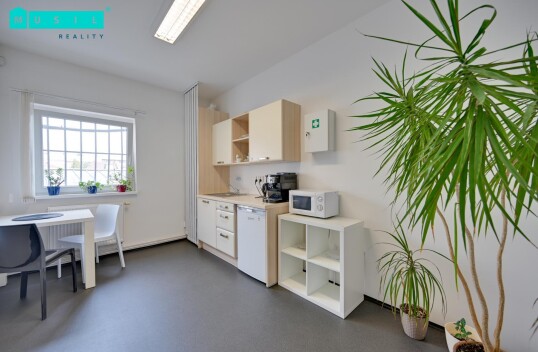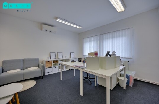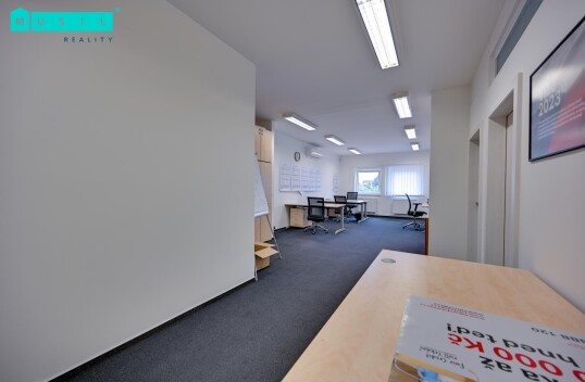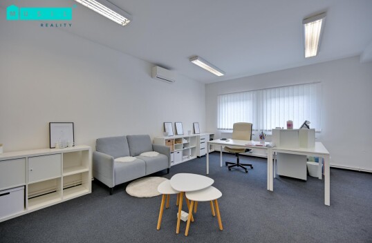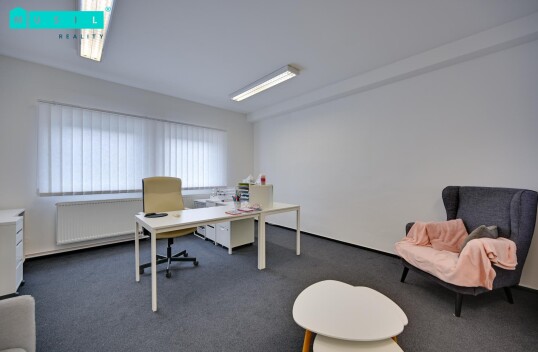 Pronájem kanceláře o výměře cca 45 m2, která je umístěná v 1. patře administrativní budovy na ulici Hálkova. Ke kanceláři náleží společná kuchyňka a WC M/Ž, prostory jsou po rekonstrukci. Topení zajištěno centrálně, plastová okna, na podlaze koberec, klimatizace, samozřejmostí je ...