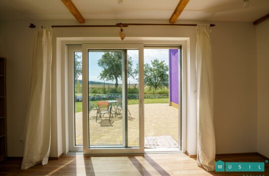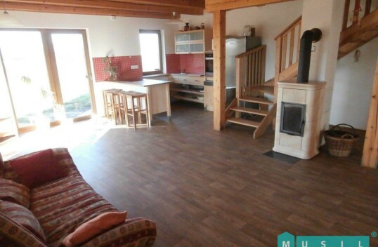 Pronájem rodinného domu se zahradou ve Velkém týnci u Olomouce. Jedná se o nízkoenergetickou dřevostavbu nově postavenou v roce 2012. Dům je dispozičně řešen jako 5+kk, kdy v přízemí se nachází obývac