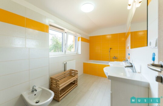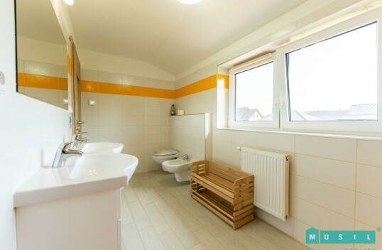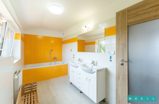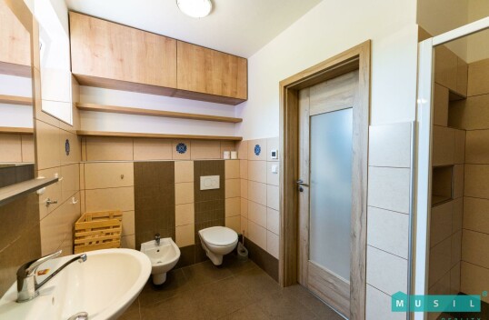 Pronájem rodinného domu se zahradou ve Velkém Týnci u Olomouce. Jedná se o zděnou novostavbu, která je dispozičně řešena jako 5+kk, kdy v přízemí se nachází obývací pokoj s kuchyní, ložnice, šatna a p